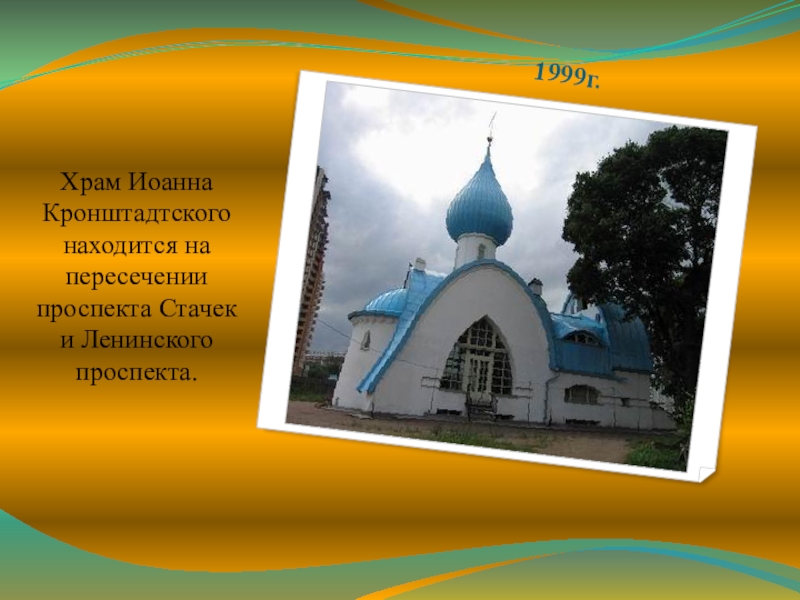 1999г.Храм Иоанна Кронштадтского находится на пересечении проспекта Стачек и Ленинского проспекта.