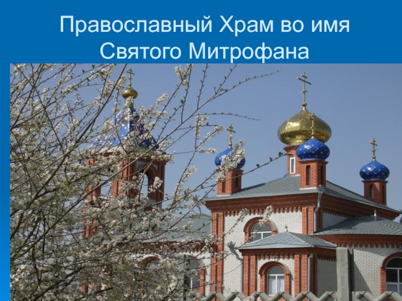 Слайд 14Православный Храм во имя Святого Митрофана