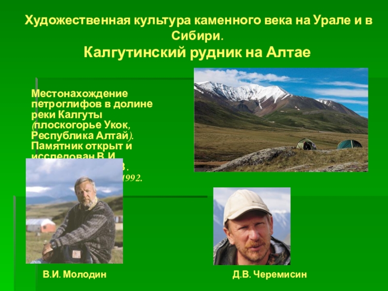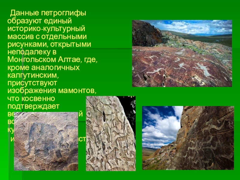 Местонахождение петроглифов в долине реки Калгуты (плоскогорье Укок, Республика Алтай).
