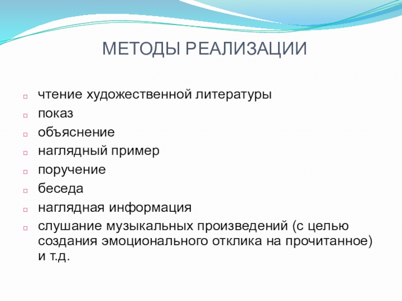 Слайд 12 МЕТОДЫ РЕАЛИЗАЦИИ
