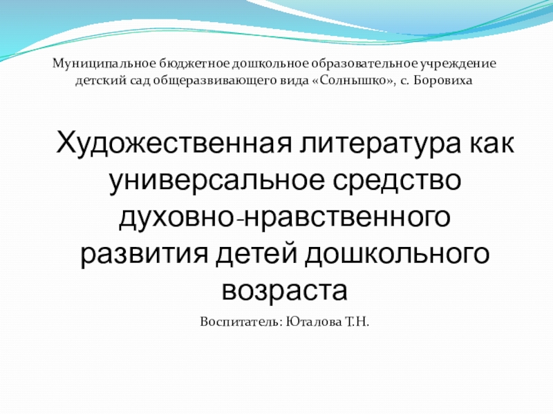 Слайд 1Муниципальное бюджетное дошкольное образовательное учреждение детский сад общеразвивающего вида «Солнышко», с.