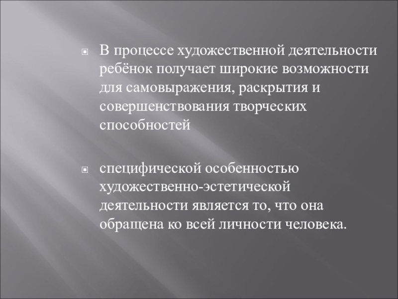 специфической особенностью художественно-эстетической деятельности является то, что она обращена ко всей личности человека.
