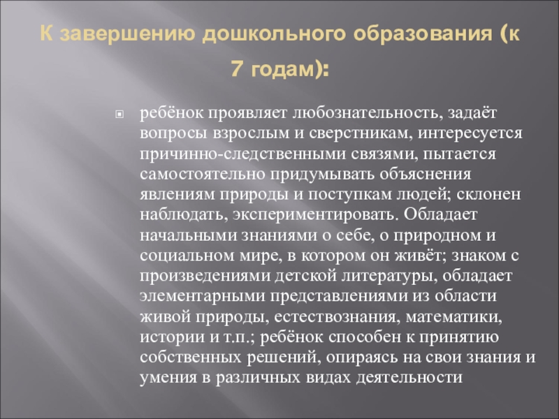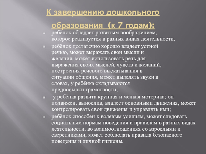 Слайд 20К завершению дошкольного образования (к 7 годам):
