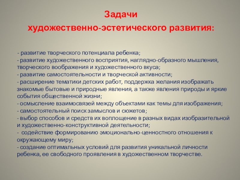 художественно-эстетического развития: