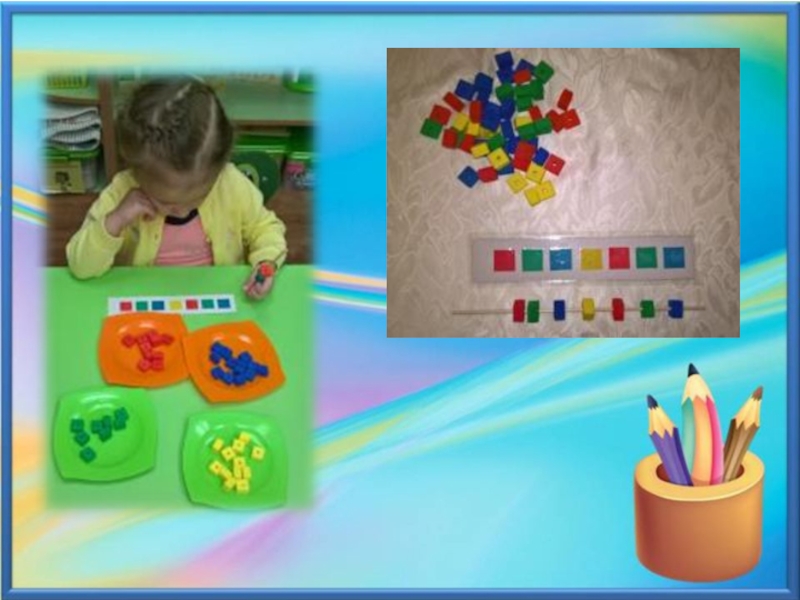 Цель: Формировать у детей умение сосредоточивать внимание на предметах и явлениях окружающего мира. Устанавливать простейшие связи между предметами и явлениями, делать простейшие обобщения. Учить подбирать предметы по цвету, правильно называть цвета. Развивать мелкую моторику. Учить детей выполнять постепенно усложняющиеся правила.