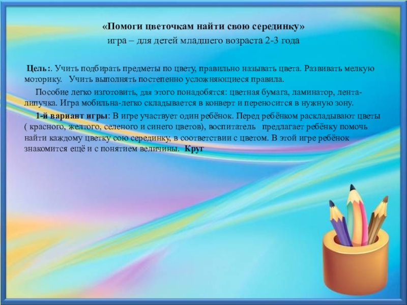Слайд 6«Помоги цветочкам найти свою серединку»
