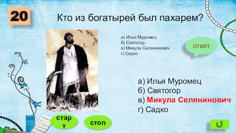 а) Илья Муромец