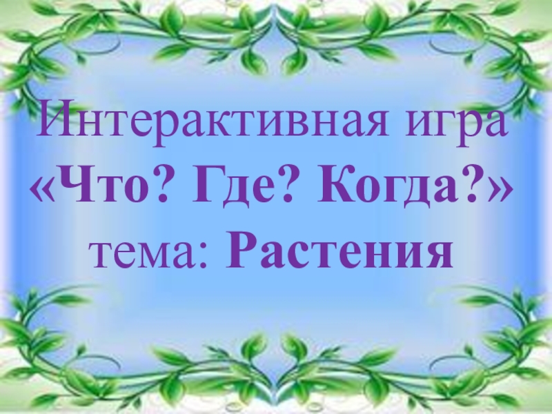 Слайд 1Интерактивная игра «Что? Где? Когда?» тема: Растения