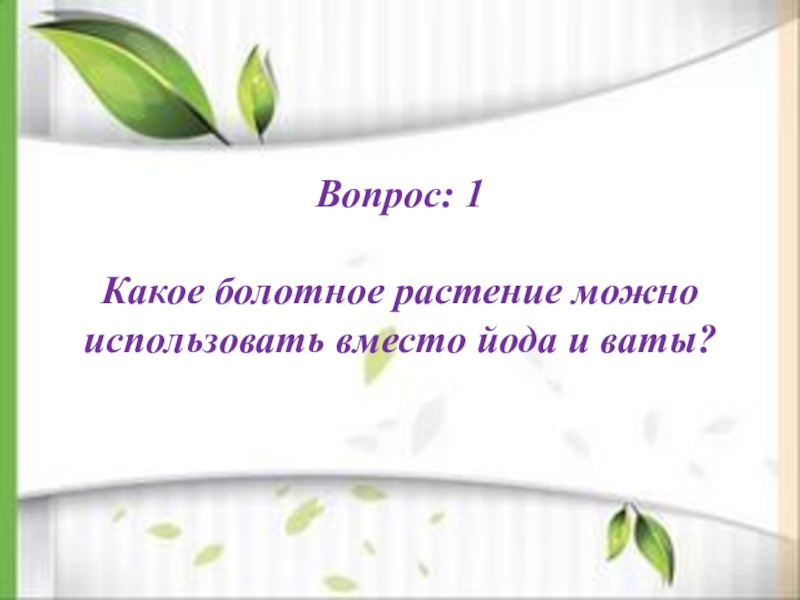 Слайд 3Вопрос: 1 Какое болотное растение можно использовать вместо йода и ваты?