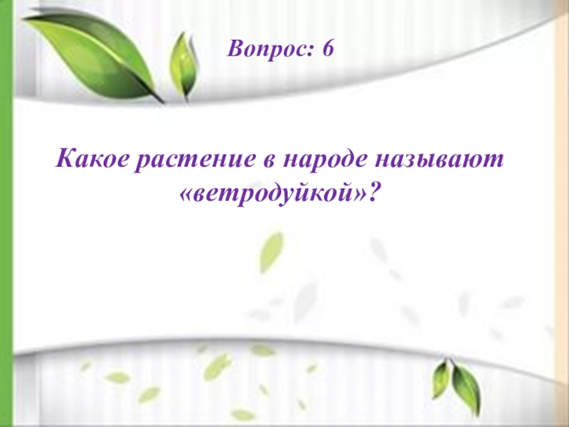 Вопрос: 6Какое растение в народе называют «ветродуйкой»?