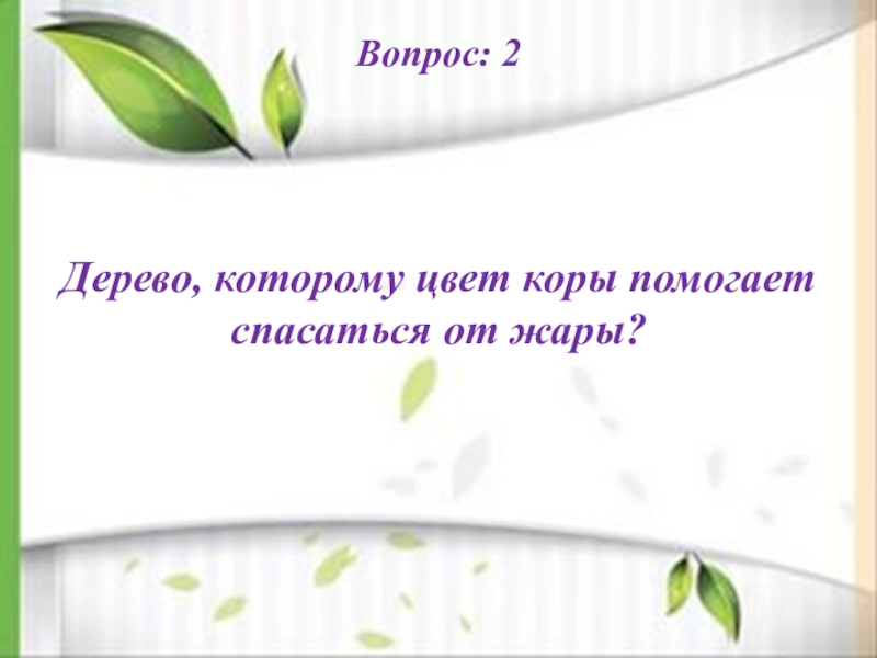 Вопрос: 2Дерево, которому цвет коры помогает спасаться от жары?