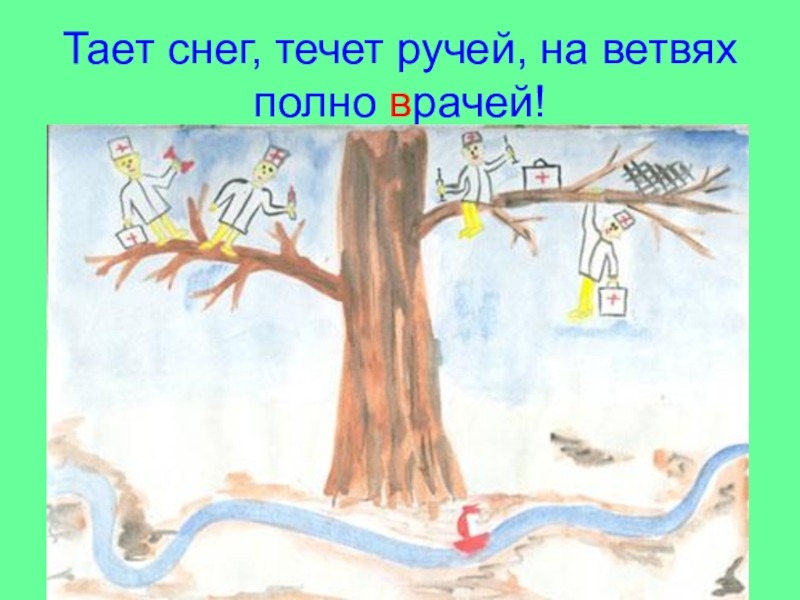 Слайд 6Тает снег, течет ручей, на ветвях полно врачей!