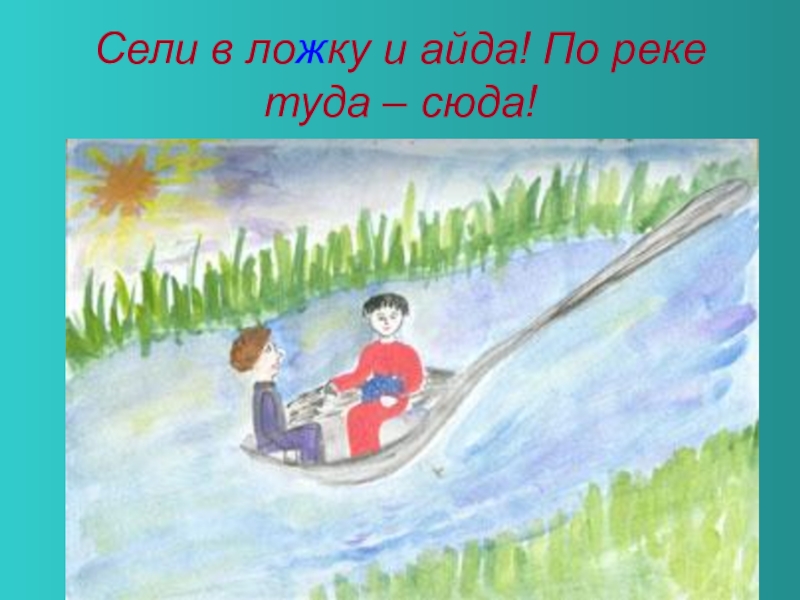 Слайд 11Сели в ложку и айда! По реке туда – сюда!