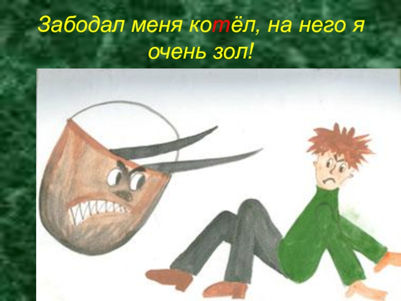 Слайд 13Забодал меня котёл, на него я очень зол!