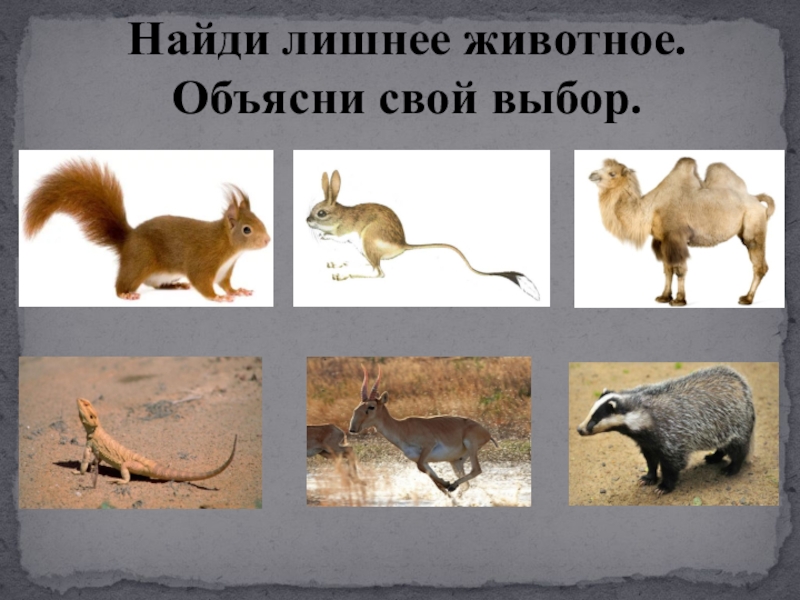 Слайд 4Найди лишнее животное. Объясни свой выбор.