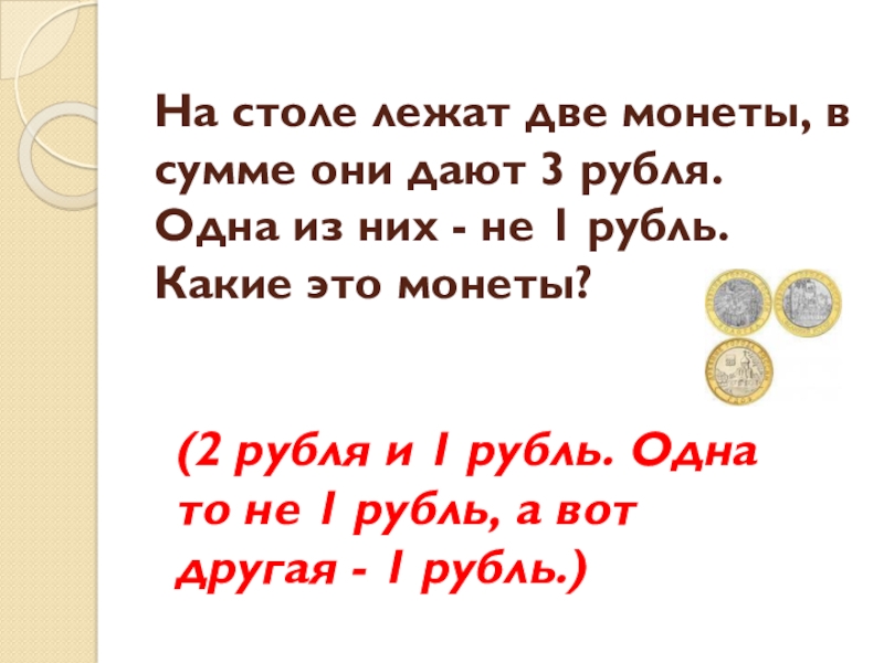 (2 рубля и 1 рубль. Одна то не 1 рубль, а вот другая - 1 рубль.)