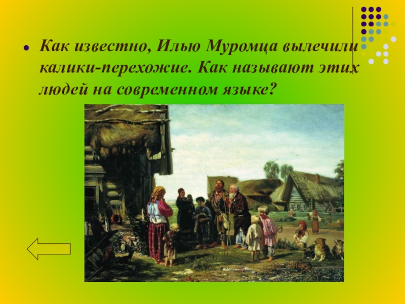 Как известно, Илью Муромца вылечили калики-перехожие. Как называют этих людей на