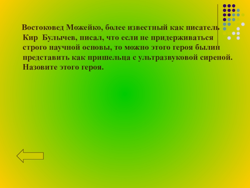что если не придерживаться строго научной основы, то можно этого героя былин представить как пришельца с ультразвуковой сиреной. Назовите этого героя.
