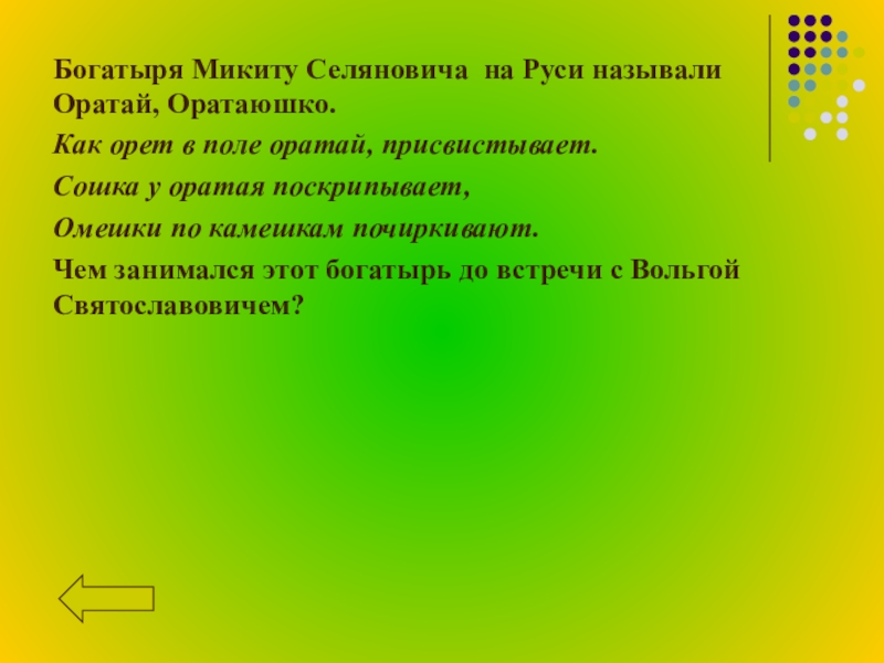 Богатыря Микиту Селяновича на Руси называли Оратай, Оратаюшко.