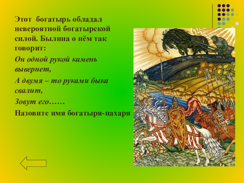 Презентация, доклад на тему Игра эрудит по чтению тема Богатыри