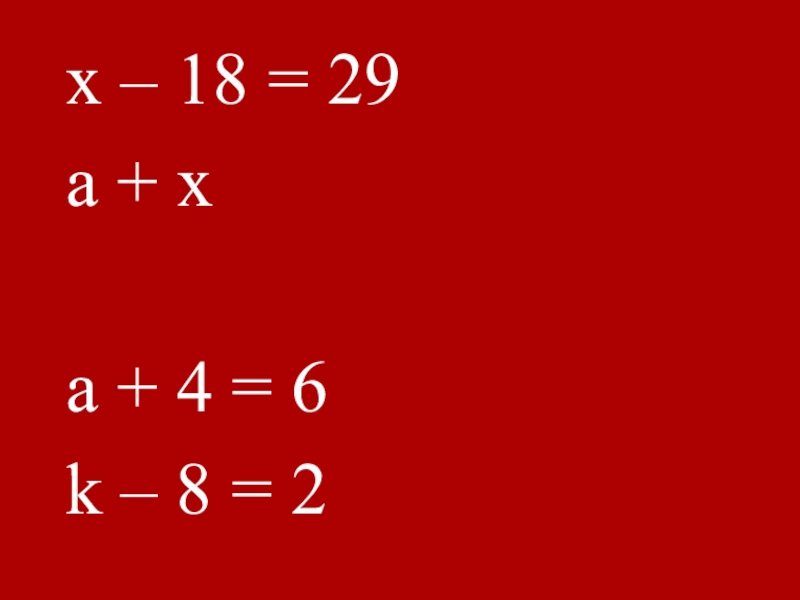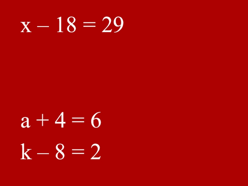 x – 18 = 29a + xa + 4 = 6k – 8 = 2
