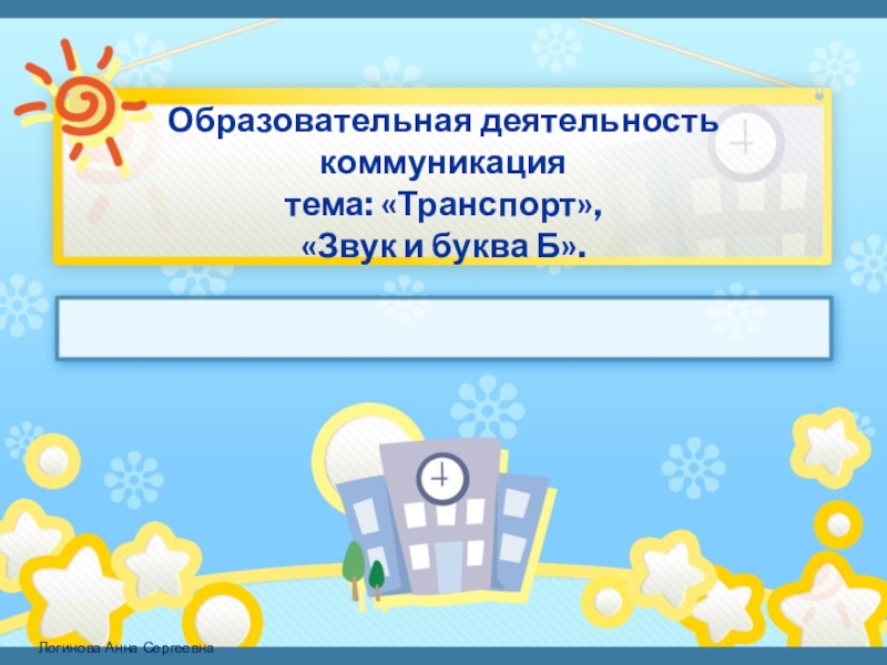 Образовательная деятельность коммуникация тема: «Транспорт»,  «Звук и буква Б».Логинова Анна Сергеевна