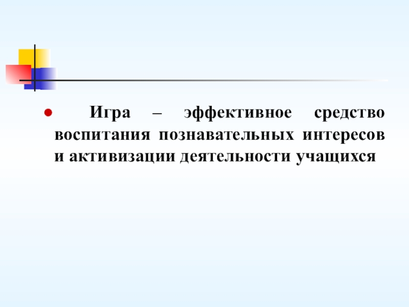 Слайд 10 Игра – эффективное средство воспитания познавательных интересов и активизации деятельности