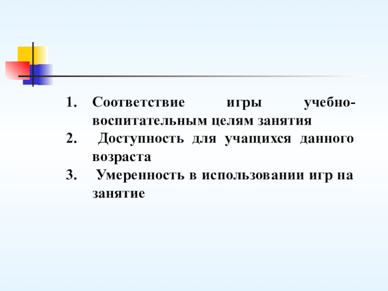 Слайд 20Соответствие игры учебно-воспитательным целям занятия