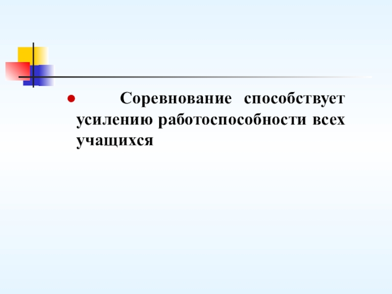 Слайд 18 Соревнование способствует усилению работоспособности всех учащихся