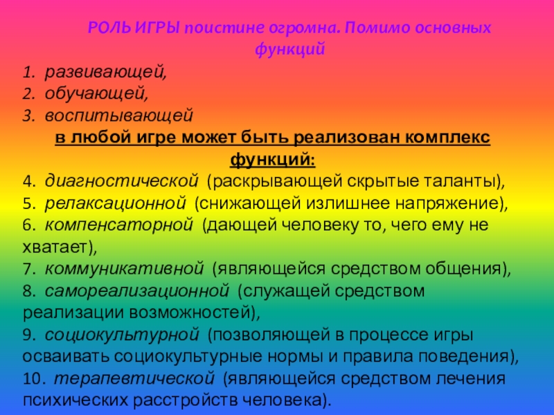 Слайд 3РОЛЬ ИГРЫ поистине огромна. Помимо основных функций