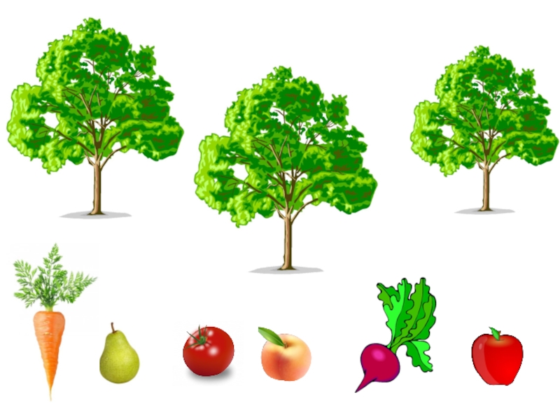 Слайд 3: посади все овощи на грядкуСлайд 4: верни фрукты на деревьяСлайд 5: готовим сок из фруктов