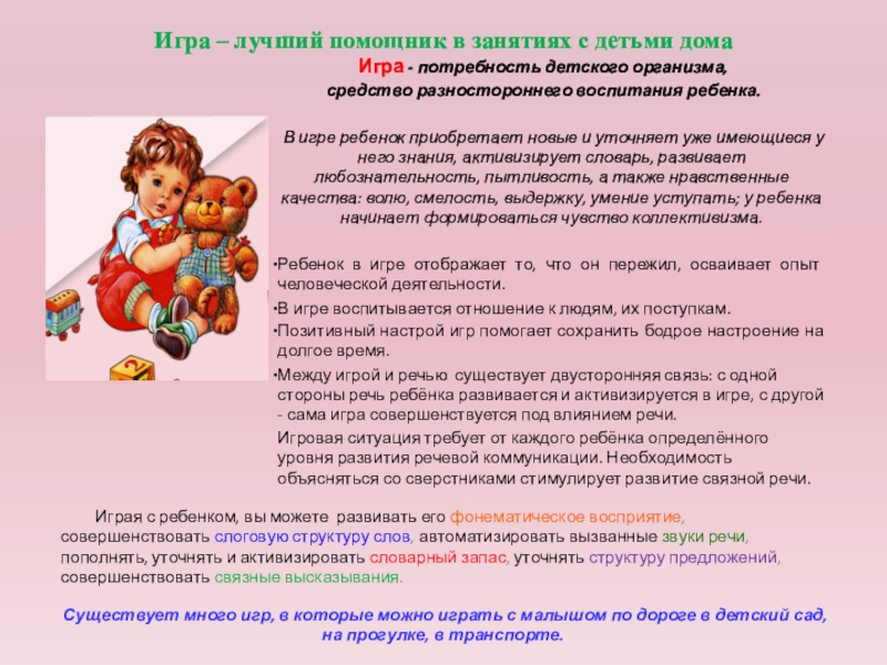 Слайд 1Игра – лучший помощник в занятиях с детьми дома