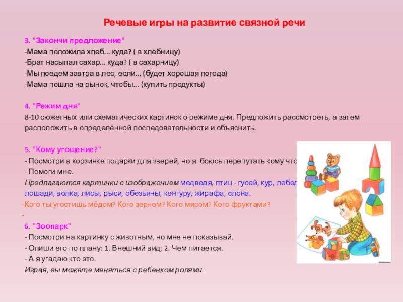 Задавайте вопросы ребёнку и следите, чтобы он не изменял слова в предложениях ответах.