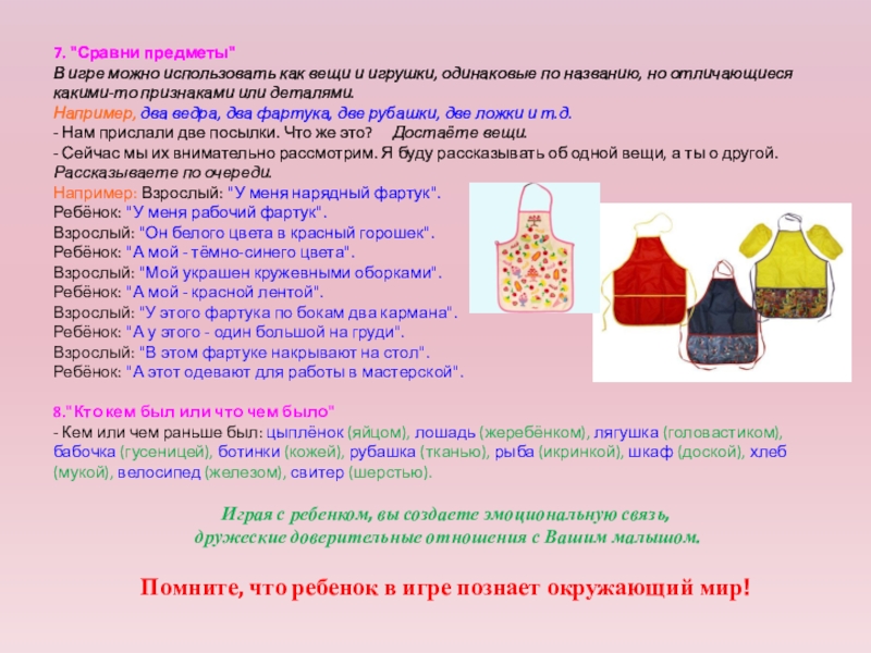Так вы побуждаете называть самые разные признаки предметов, помогаете развитию связной речи.