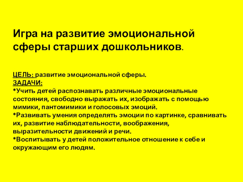 Слайд 3Игра на развитие эмоциональной сферы старших дошкольников.