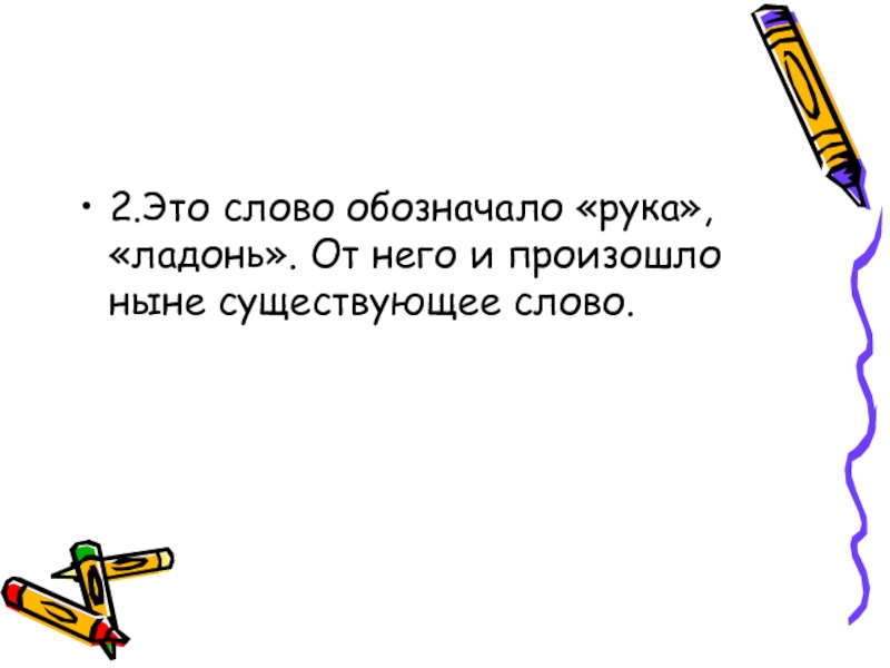 2.Это слово обозначало «рука», «ладонь». От него и произошло ныне существующее
