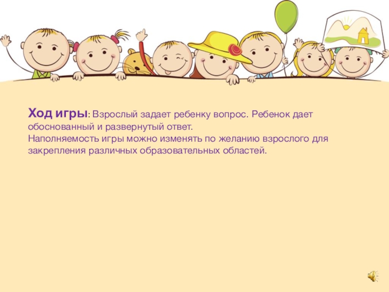 Слайд 3Ход игры: Взрослый задает ребенку вопрос. Ребенок дает обоснованный и развернутый