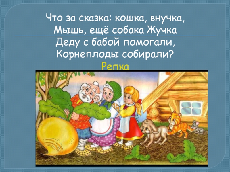 Слайд 18Что за сказка: кошка, внучка,