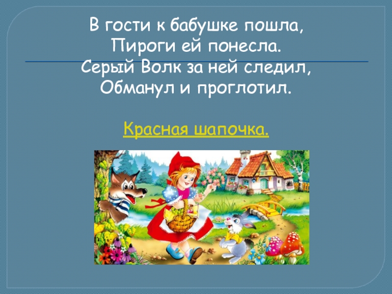 Слайд 12В гости к бабушке пошла,