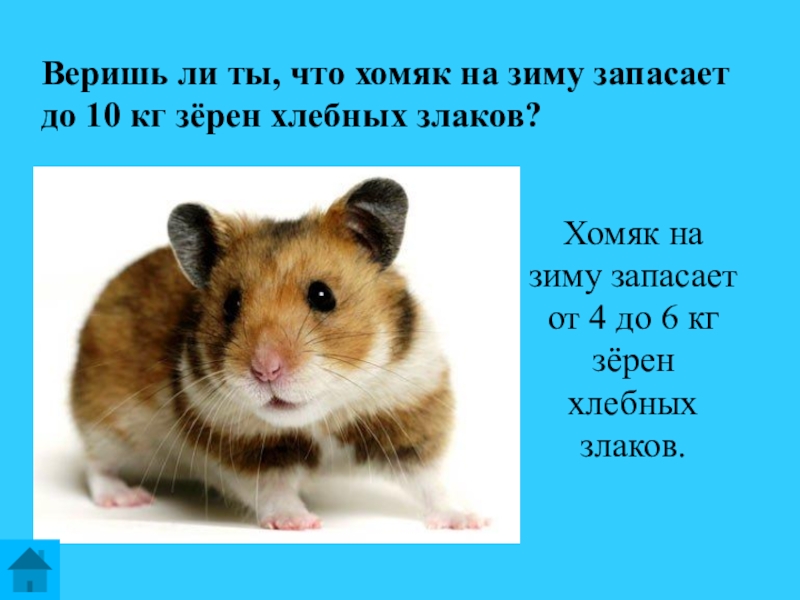 Хомяк на зиму запасает от 4 до 6 кг зёрен хлебных злаков.