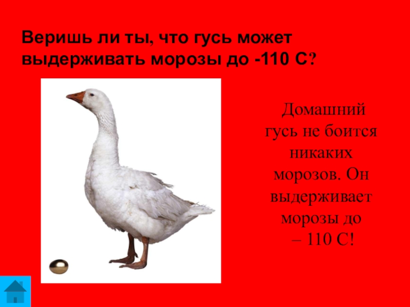 Веришь ли ты, что гусь может выдерживать морозы до -110 С?
