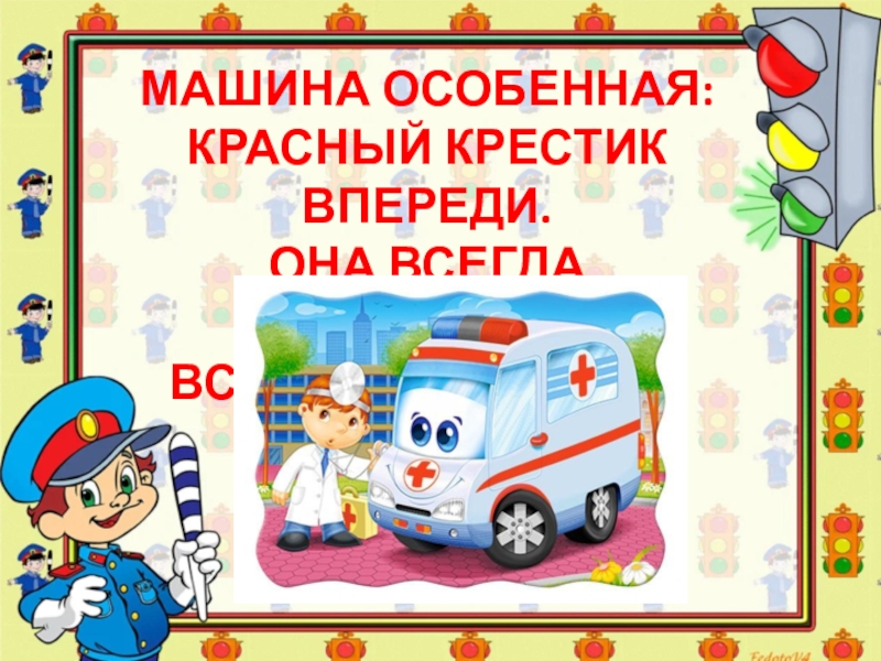 машина особенная:Красный крестик впереди.Она всегда торопится,Всегда к больным спешит.