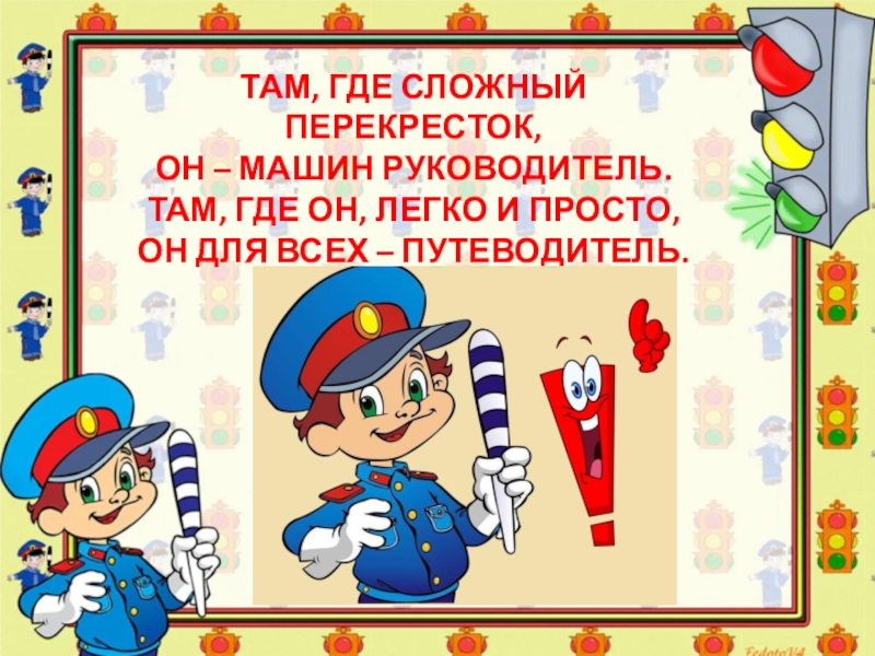 Там, где сложный перекресток, Он – машин руководитель. Там, где он, легко и просто, Он для