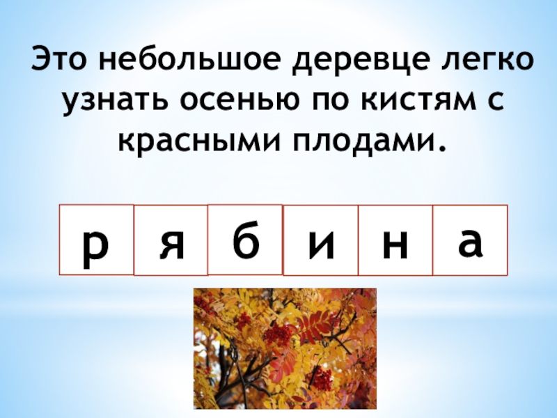 Слайд 22Это небольшое деревце легко узнать осенью по кистям с красными плодами.