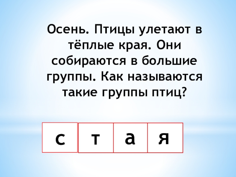 Осень. Птицы улетают в тёплые края. Они собираются в большие группы.