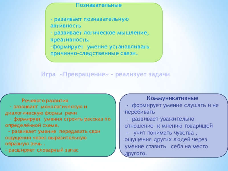 Игра «Превращение» - реализует задачи