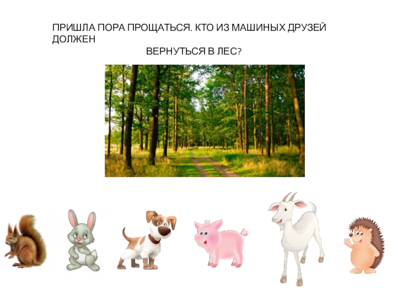 Слайд 7ПРИШЛА ПОРА ПРОЩАТЬСЯ. КТО ИЗ МАШИНЫХ ДРУЗЕЙ ДОЛЖЕН