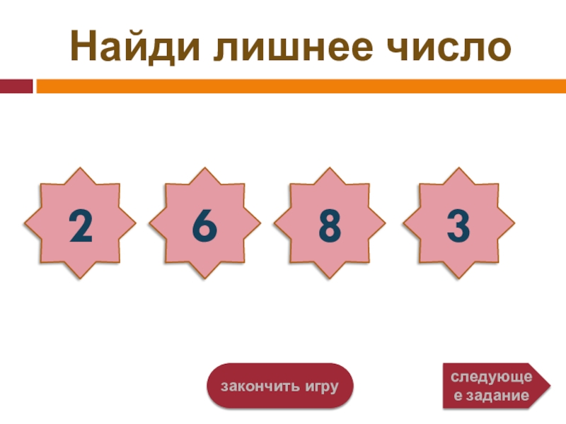 Найди лишнее число710вернутьсяследующее задание59закончить игру
