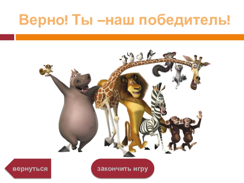 Верно! Ты –наш победитель!вернутьсязакончить игру