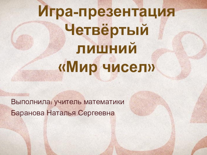 Игра-презентация Четвёртый лишний «Мир чисел»Выполнила: учитель математикиБаранова Наталья Сергеевна